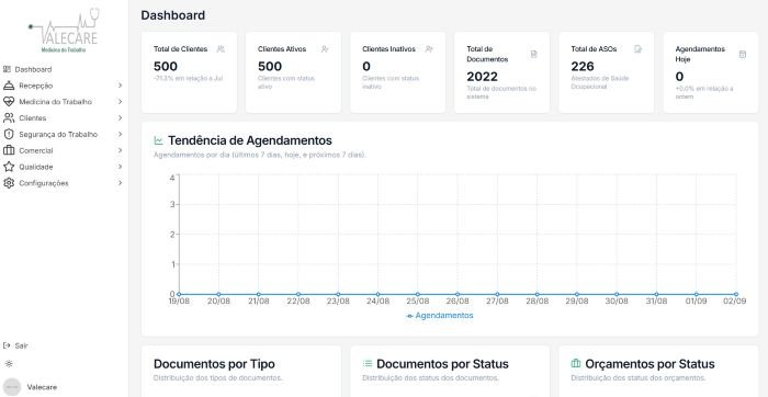 Desenvolvimento de sistema para gestão completa de agendamentos e documentos com uso de inteligência artificial para a empresa Valecare Medicina Ocupacional em Taubaté/SP